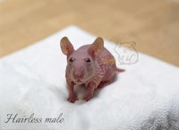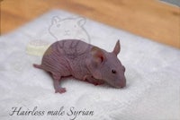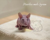 This little pink gentleman is a baby hairless male hamster looking for his forever home. Ethically bred with careful selection and proper husbandry.